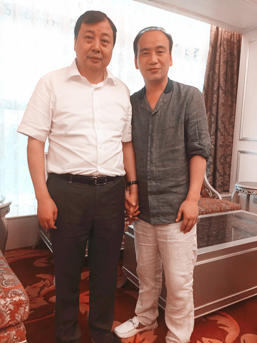 中共十九大代表、江苏省人大常委会委员、华西村党委书记、华西集团董事长吴协恩(左)与南京鸭业协会会长窦仁彬(右)合影