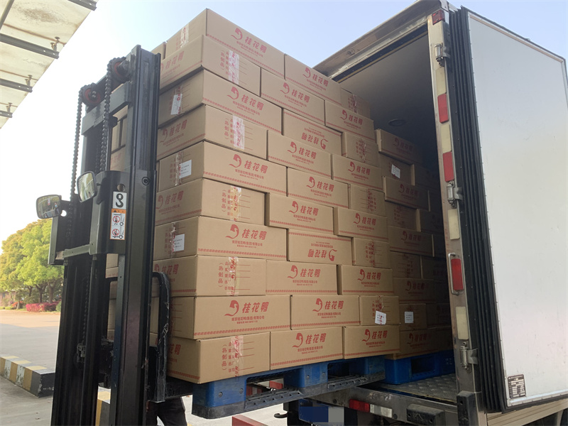 十多万份桂花鸭产品将陆续从南京桂花鸭滨江基地出发,星夜兼程,送往上海,为助力上海坚决打赢疫情防控攻坚战贡献桂花鸭人的力量。