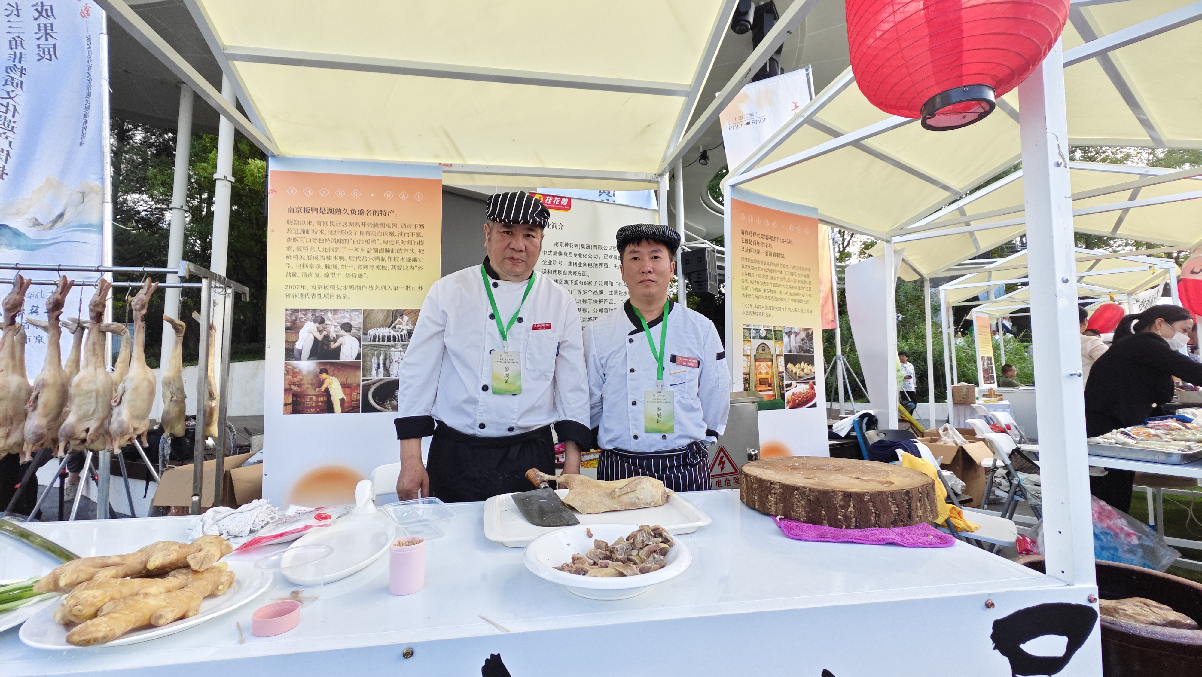 由江苏省文化和旅游厅指导,江苏省文化馆、江苏省非物质文化遗产保护中心共同协办的“共生 共享 共通”长三角非物质文化遗产保护成果展示活动于10月18日-20日,在南京玄武湖莲花广场隆重召开。南京桂花鸭(集团)有限公司【以下简称桂花鸭集团】应邀出席,公司贾有文同志作为首批江苏省非物质文化遗产南京板鸭、盐水鸭制作技艺代表性传承人带队出席该活动,为观众现场演绎“炒盐腌、清卤复、烘的干、煮的足”的盐水鸭非遗制作技艺。