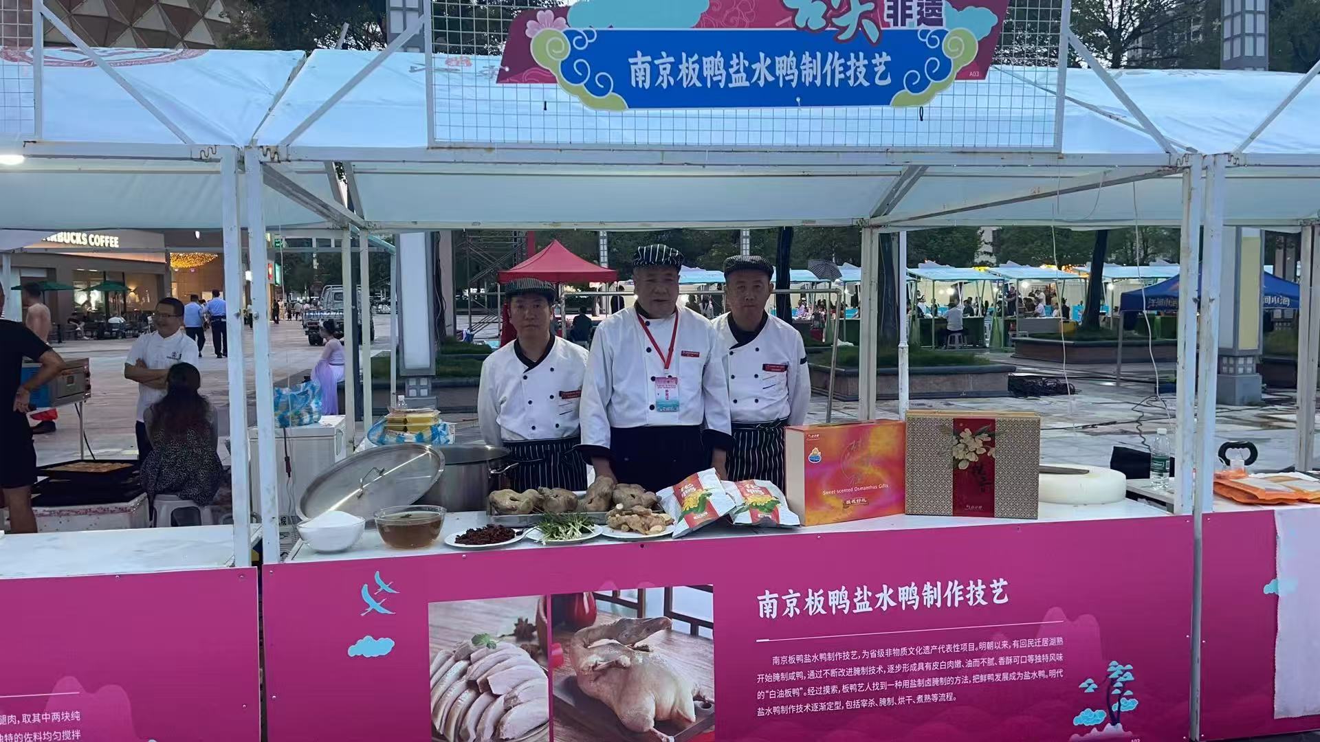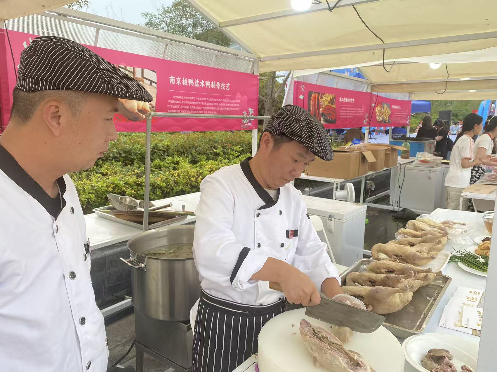 特别是南京板鸭盐水鸭制作技艺的展位前,里三层外三层,围得那叫一个水泄不通。